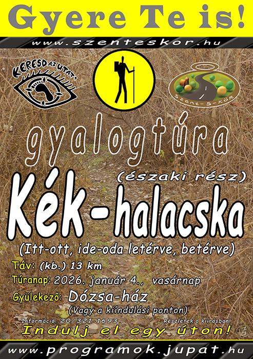 Programkód: CsTgyt260104 Programnév: Kék-halacska ösvény (északi rész) / (Itt-ott, ide-oda letérve, betérve) Megvalósítva: